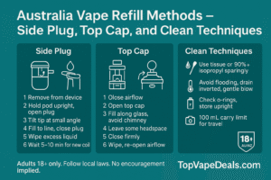 Australia Vape Refill Methods — Side Plug, Top Cap, and