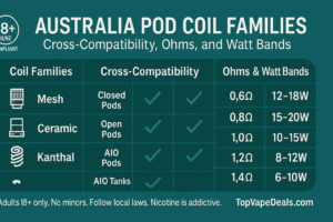 Australia Pod Coil Families — Cross-Compatibility, Ohms, and Watt Bands